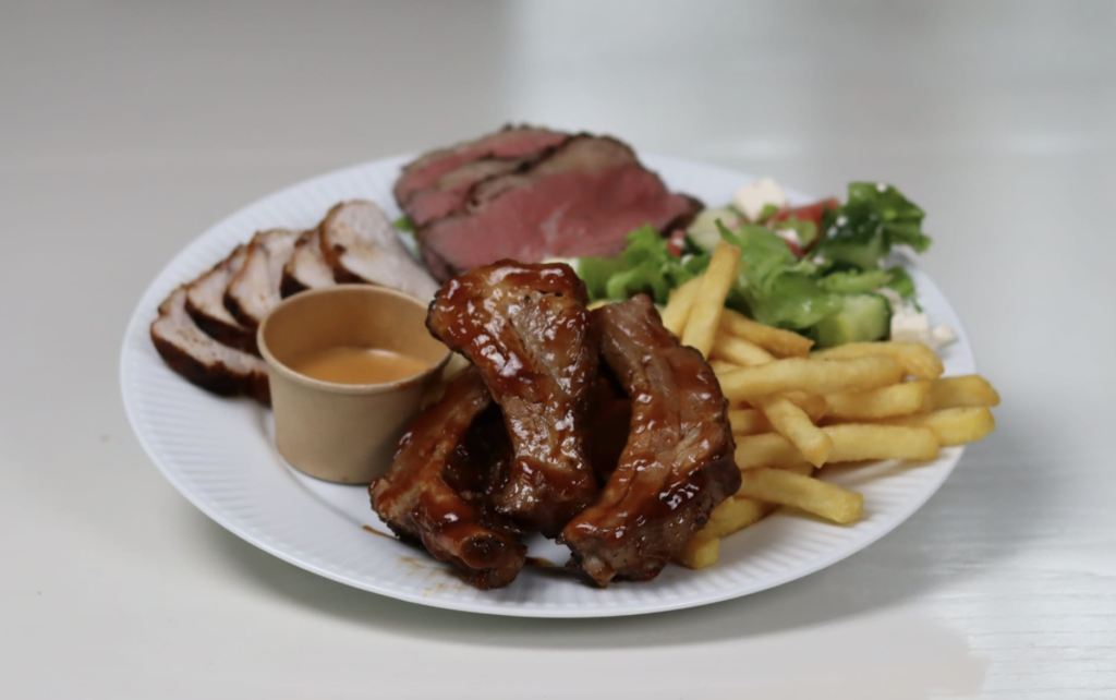 Kød:Mør Angus okseroast, saftig turkey roast og spareribs